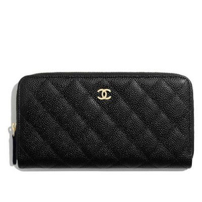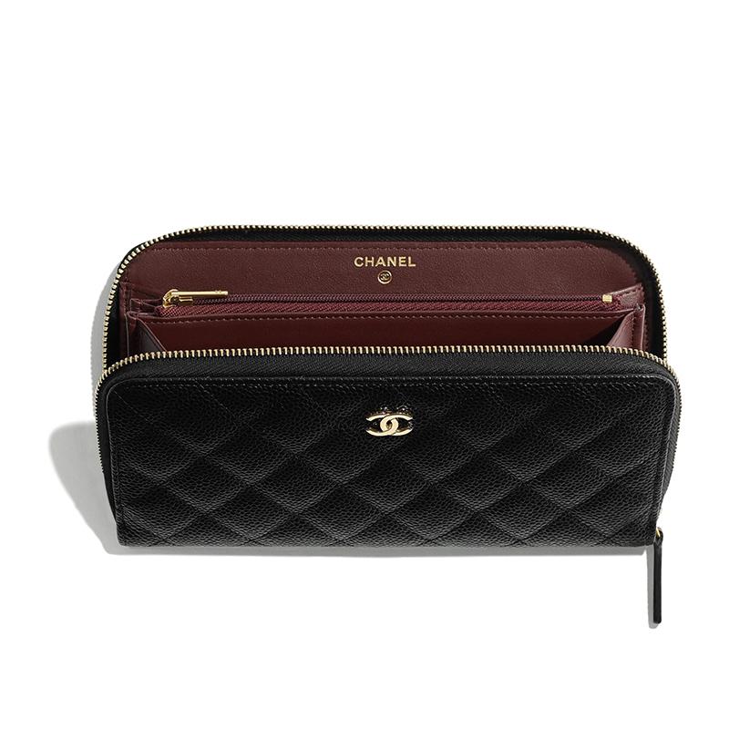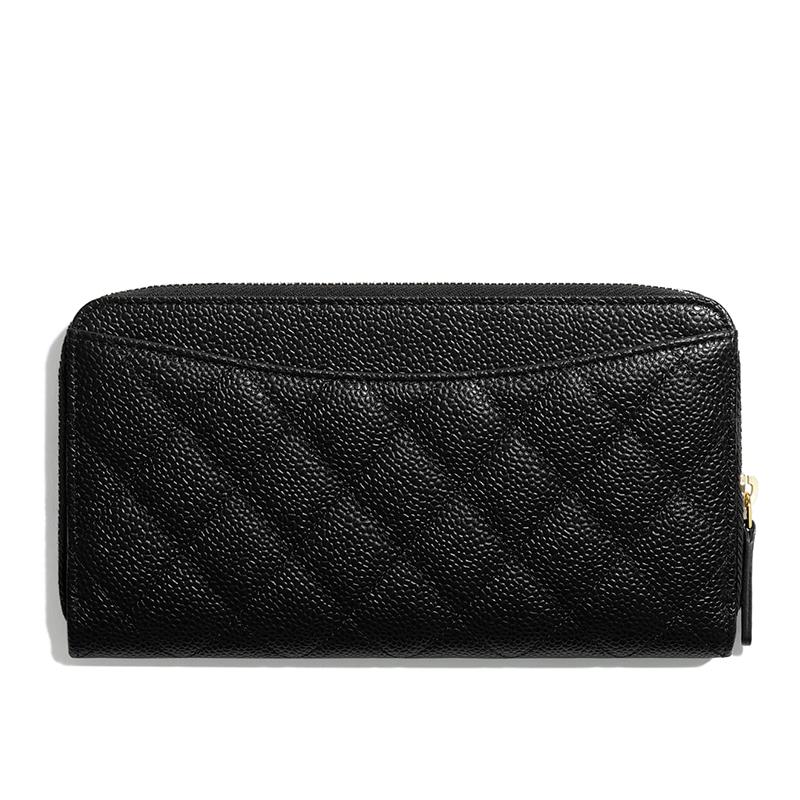 【包税】CHANEL/香奈儿  经典鱼子纹黑色小牛皮金色双C长款拉链钱包