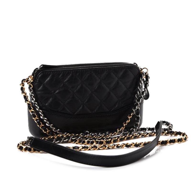 【 Tax included 】 CHANEL/Chanel Classic Black Smooth Leather with Natural Leather and Diamond Grid Pattern Chain Shoulder Stray WOC Bag