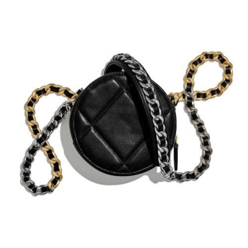 [Tax included] CHANEL/Chanel Black Sheepskin Diamond Grid Classic CHANEL 19 Series Chain Round Cake Bag Shoulder Bag