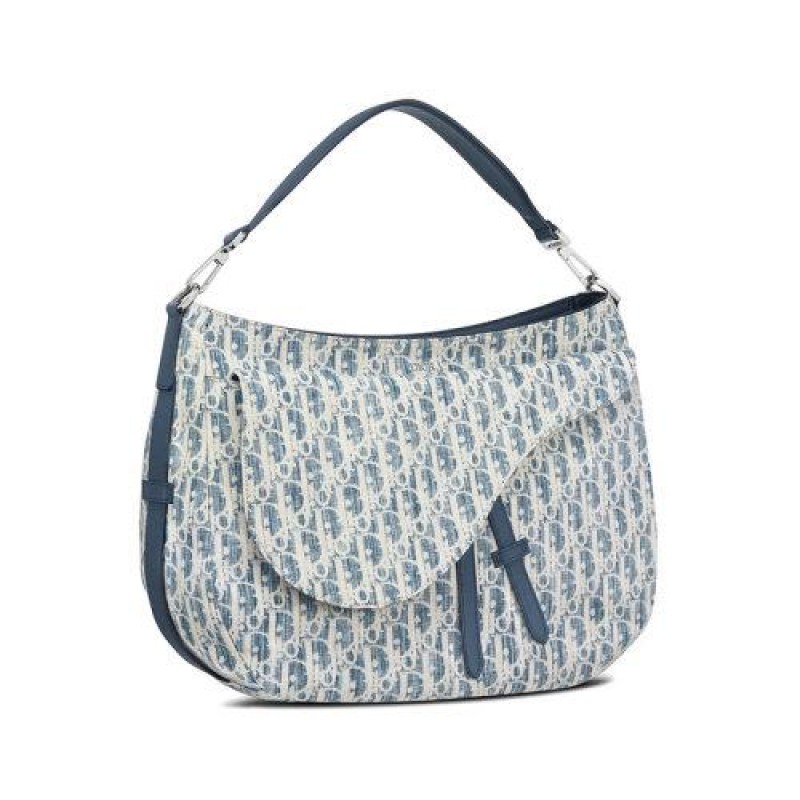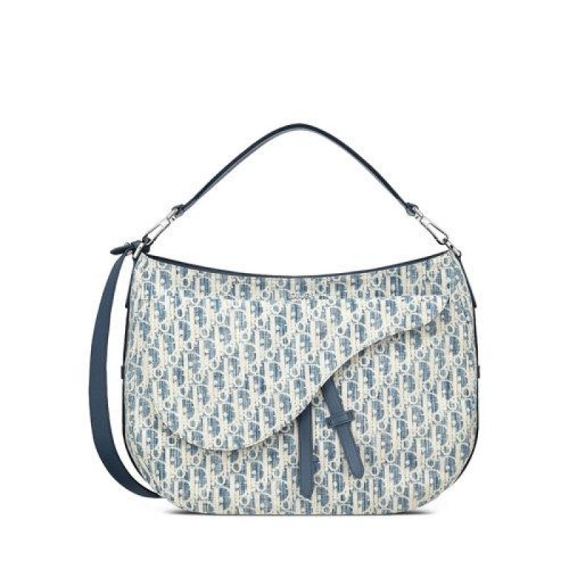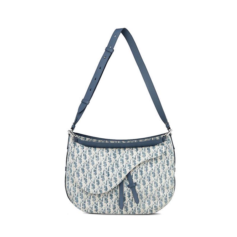 【包税】DIOR/迪奥 2021春夏新款 SADDLE SOFT系列 男士蓝色Dior斜纹Kasuri提花帆布可调节肩带手提斜挎包1ADHO022UTK_H00E