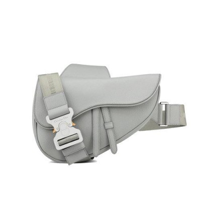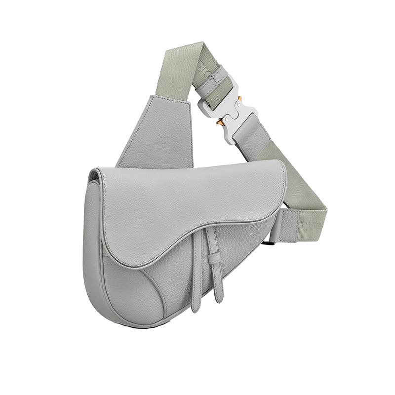 【包税】DIOR/迪奥 21春夏新款SADDLE系列 男士灰色粒面小牛皮磁性翻盖拉链可调式尼龙肩带斜挎马鞍包1ADPO093YMJ_H810