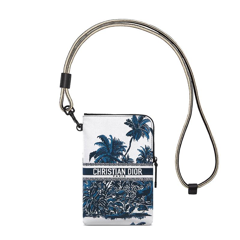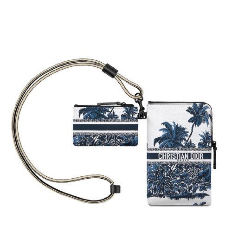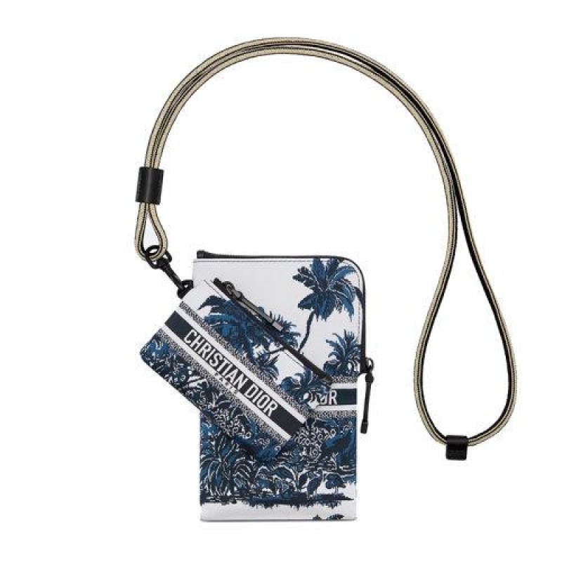 【 Tax included 】 DIOR/Dior 2021 Spring/Summer New DIORTRAVEL Series Blue Palms Technical Fabric Multi functional Zipper Wallet Handbag S5494STKU_S928