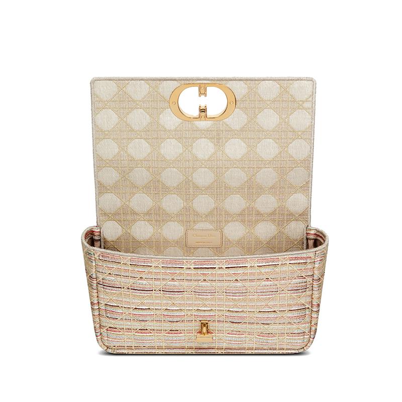 【包税】DIOR/迪奥 2021春夏新款 CARO系列 女士大号五彩条纹刺绣CD扭扣的翻盖可拆卸链带单肩手提斜挎包M9243URFY_M885