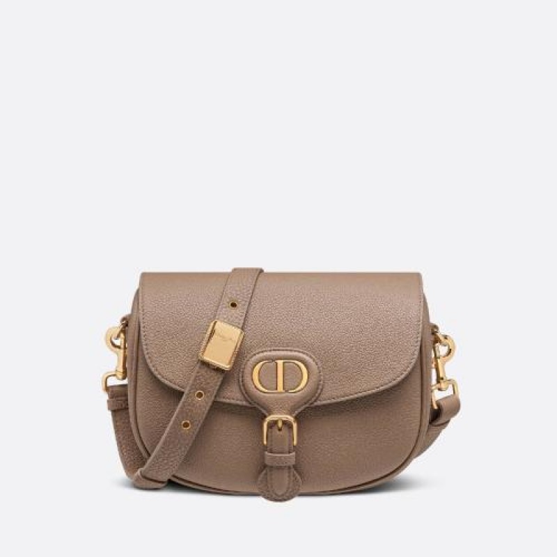 Le sac Dior Bobby propose une allure hobo aux lignes sophistiquees et aux proportions harmonieuses. Ce modele medium couleur taupe est confectionne en cuir de veau graine naturel tres souple, et presente un interieur en veau velours, ainsi que des details en metal dore vieilli. Dote d'une bandouliere coulissante amovible et ajustable grace a une boucle d'inspiration militaire, ce sac Dior Bobby pourra etre porte a la main, a l'epaule ou crossbody.