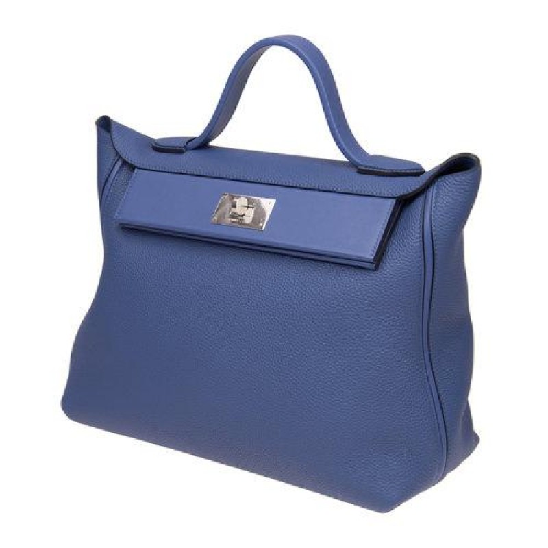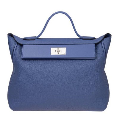 HERMES/爱马仕 女士蓝色牛皮金属银扣手拎包手提包手包女包 242435CMAATG