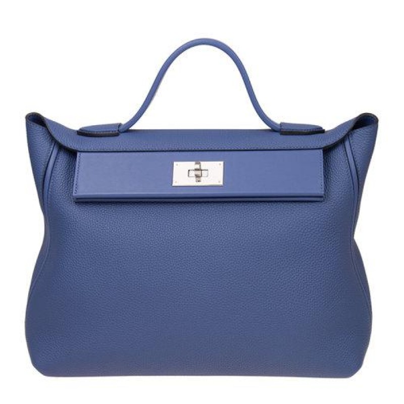 HERMES/爱马仕 女士蓝色牛皮金属银扣手拎包手提包手包女包 242435CMAATG $15643.7 |