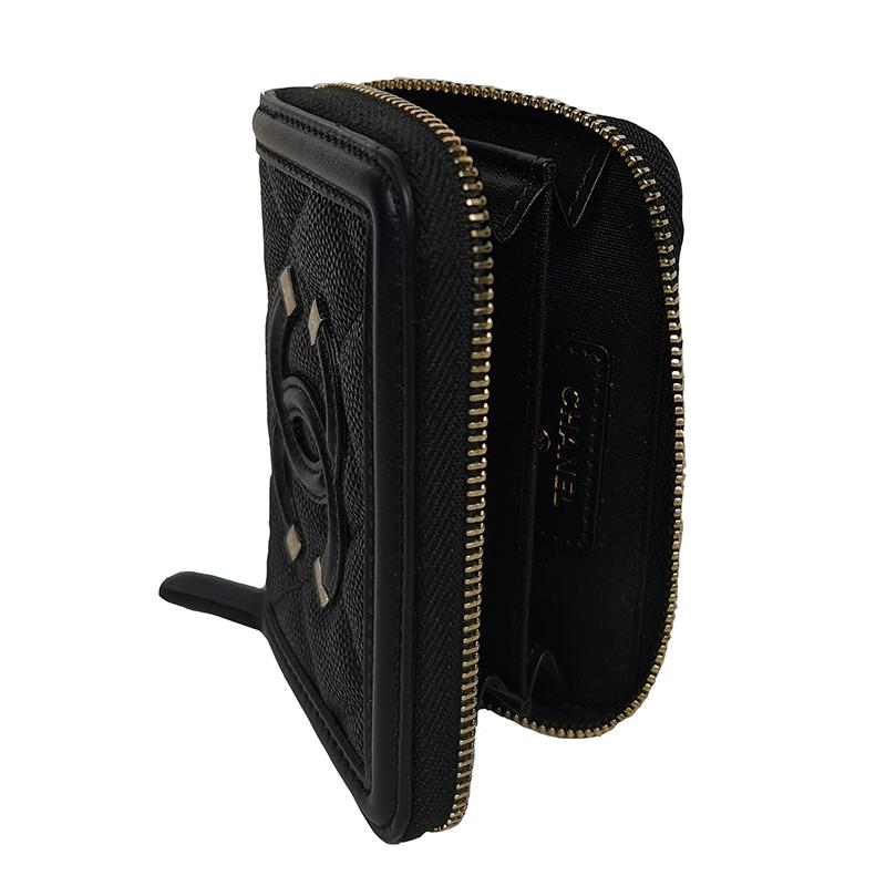 【 Package tax 】 CHANEL/Chanel Classic Black Caviar Pattern Calfskin Double C Zipper Short Wallet $1000.0 |