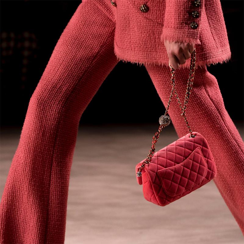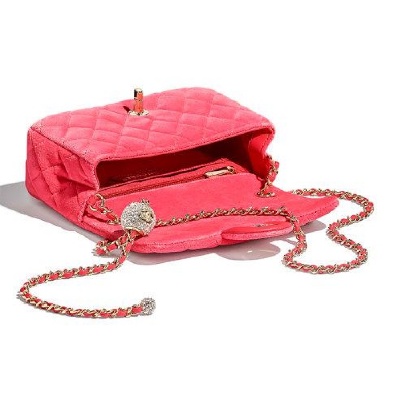 [Package Tax] CHANEL/Chanel 2020 Autumn Top New Pink Velvet Adjustable Gold Chain Adorned Crystal Ball Double C Cross Shoulder Bag