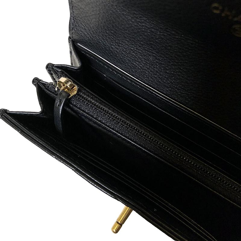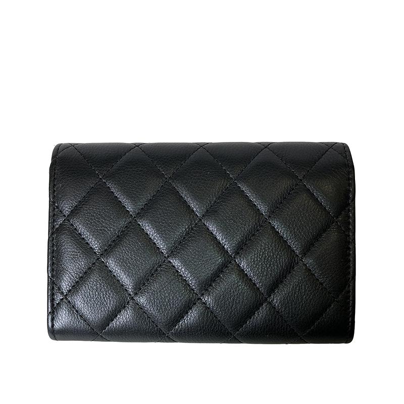 [Package Tax] CHANEL/Chanel Classic Black Natural Texture Leather White Resin Pearl Jewelry Gold Metal Double C-Button Wallet