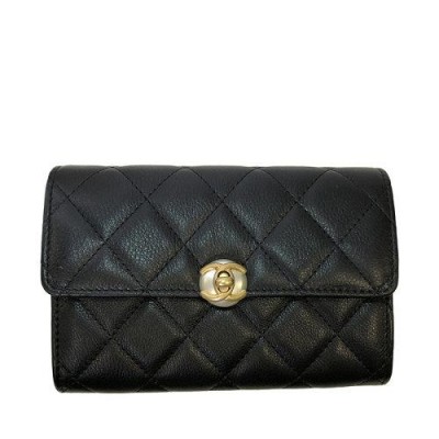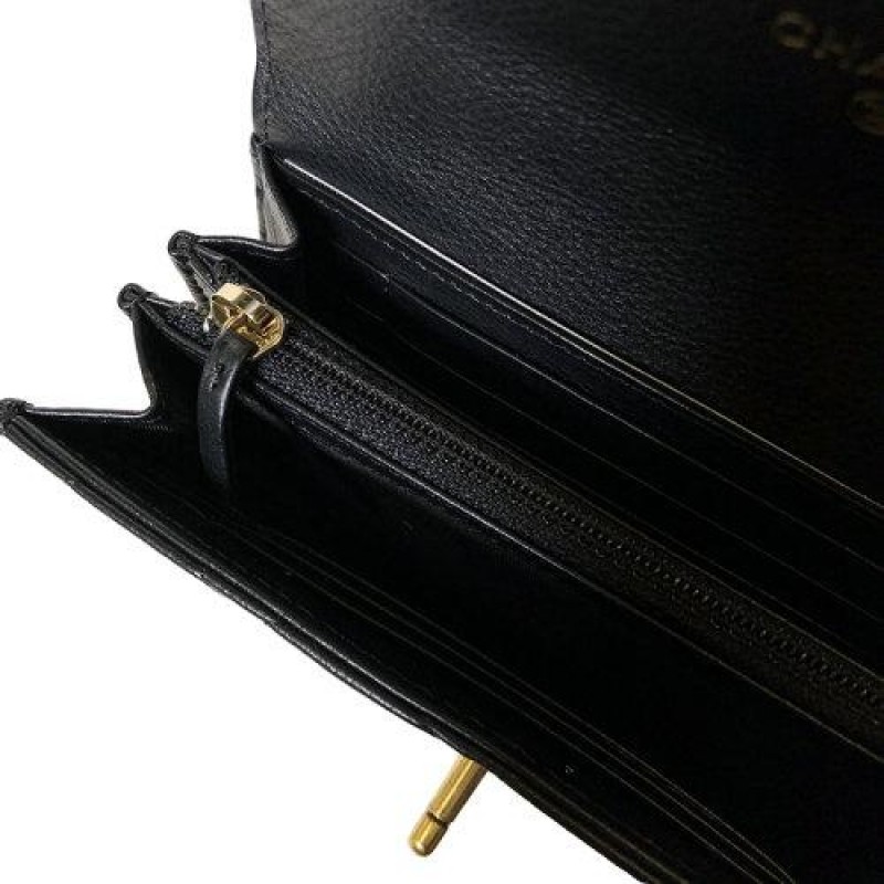 [Package Tax] CHANEL/Chanel Classic Black Natural Texture Leather White Resin Pearl Jewelry Gold Metal Double C-Button Wallet $1500.0 |