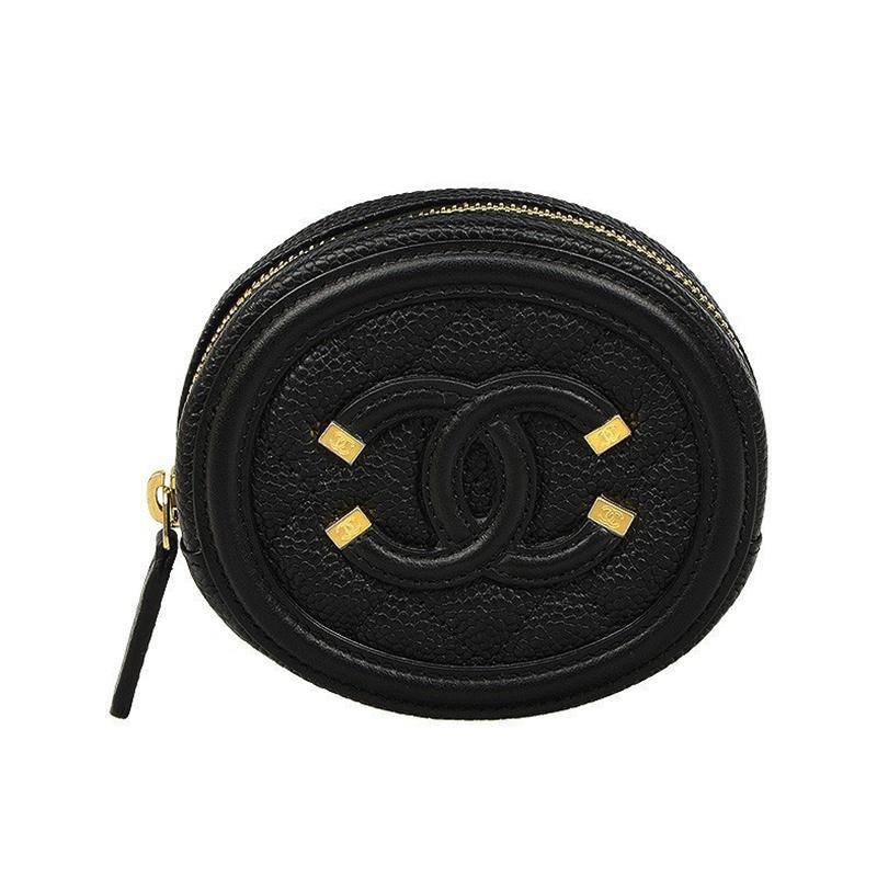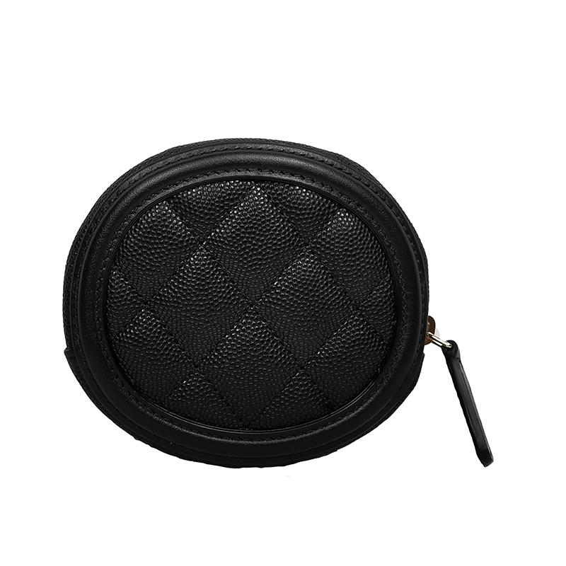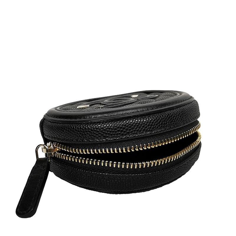 【 Package Tax 】 CHANEL/Chanel Classic Black Caviar Pattern Calfskin Double C Seam Zipper Round Wallet
