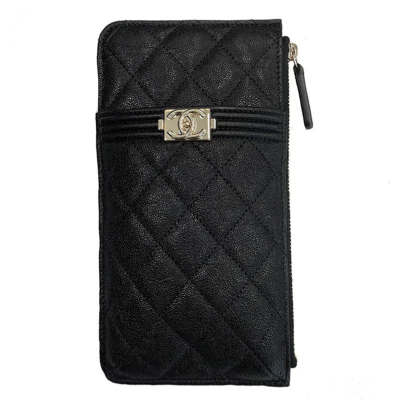 【 Tax included 】 In stock CHANEL/Chanel Classic BOY series black grain cowhide caviar pattern light gold buckle wallet