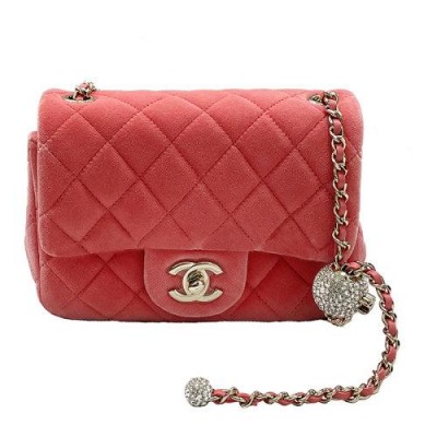 【包税】现货 CHANEL/香奈儿 2020秋冬爆款走秀款 粉红色天鹅绒金色双C点缀钻球菱格纹方胖子单肩包AS2154432211