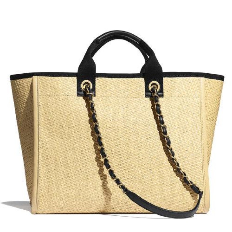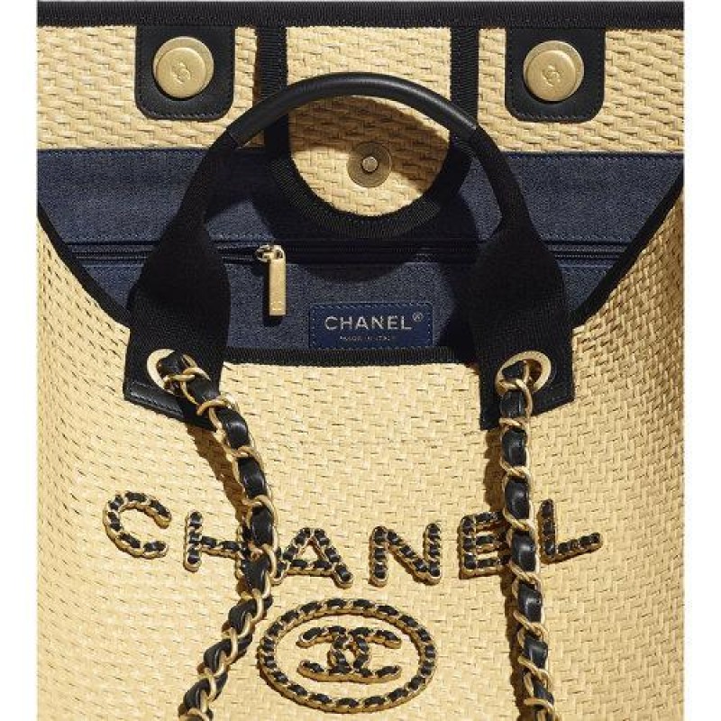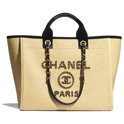 【 Tax included 】 Pre order 2-3 week shipping CHANEL/Chanel Grand cabas black/beige straw calf leather large beach tote shoulder bag A66941
