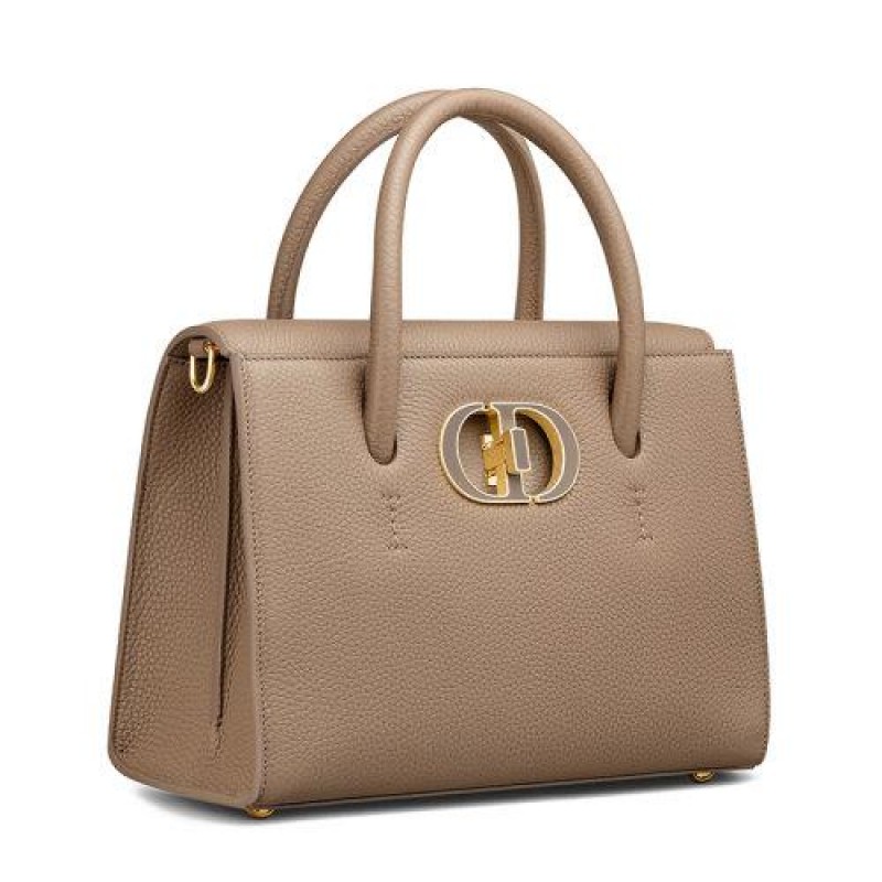 【包税】DIOR/迪奥 2021秋冬新款 TOTE ST HONORÉ系列 女士中号灰褐色粒面小牛皮CD扣手提斜挎单肩包M9321UMBB_M45M
