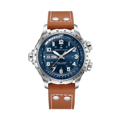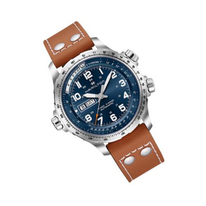 Hamilton/汉米尔顿瑞士手表 卡其航空系列自动机械男表 蓝盘浅棕色皮带 H77765541