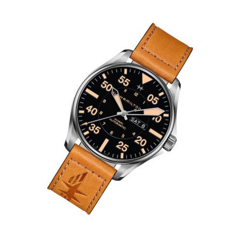 Hamilton/汉米尔顿瑞士手表 卡其航空飞行员系列星际穿越同款自动机械男表 46mm黑盘浅棕色皮带 H64725531 $863.3 |