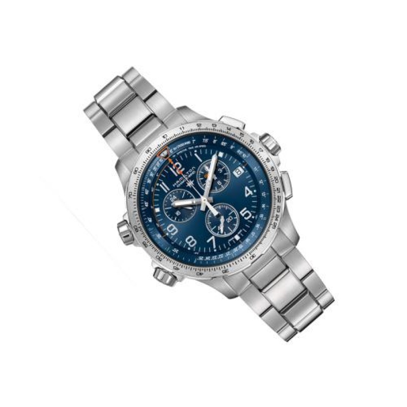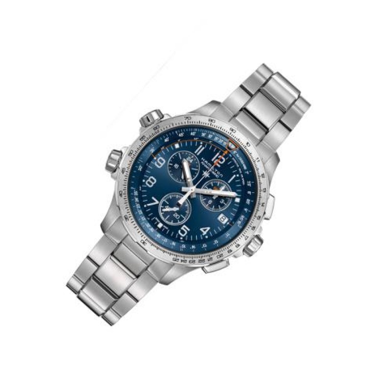 Hamilton/汉米尔顿瑞士手表 卡其航空系列石英男表 46mm蓝盘钢带 H77922141