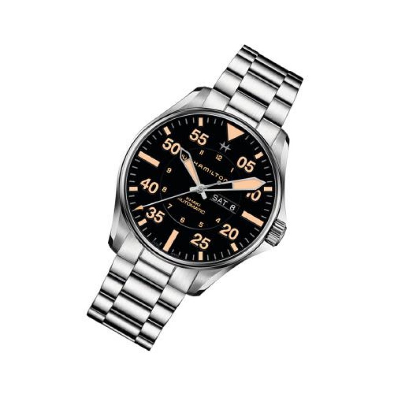 Hamilton/汉米尔顿瑞士手表 卡其航空飞行员系列星际穿越同款自动机械男表 46mm黑盘钢带 H64725131