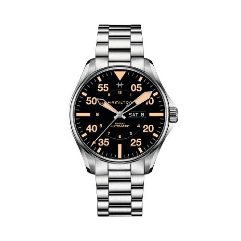 Hamilton/汉米尔顿瑞士手表 卡其航空飞行员系列星际穿越同款自动机械男表 46mm黑盘钢带 H64725131 $939.7 |