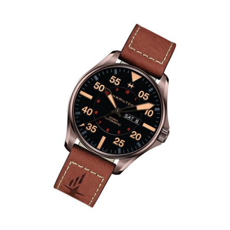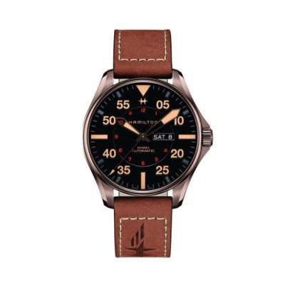 Hamilton/汉米尔顿瑞士手表 卡其航空飞行员系列星际穿越同款自动机械男表 46mm黑盘深棕色皮带 H64705531 $957.3 |