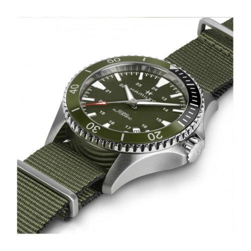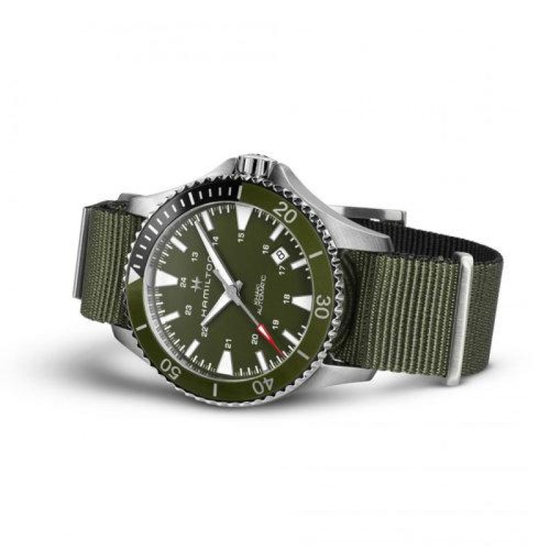 Hamilton/汉米尔顿瑞士手表 卡其海军Below Zero 自动机械 潜水男表 40mm军绿色盘帆布表带 H82375961