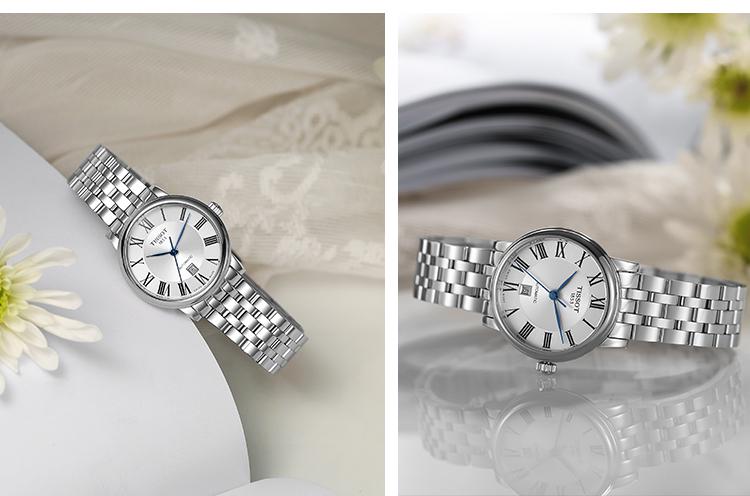 TISSOT/天梭瑞士手表 卡森臻我系列自动机械女士腕表 钢带银盘T122.207.11.033.00 $632.9 |
