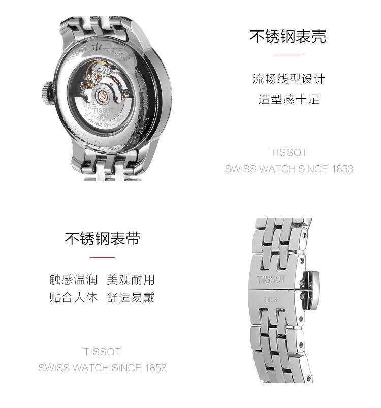 TISSOT/天梭瑞士手表 力洛克系列镶钻自动机械女士腕表 钢带贝母盘T006.207.11.116.00