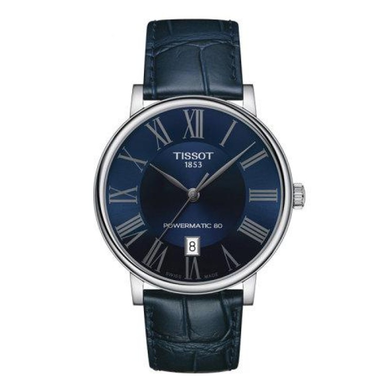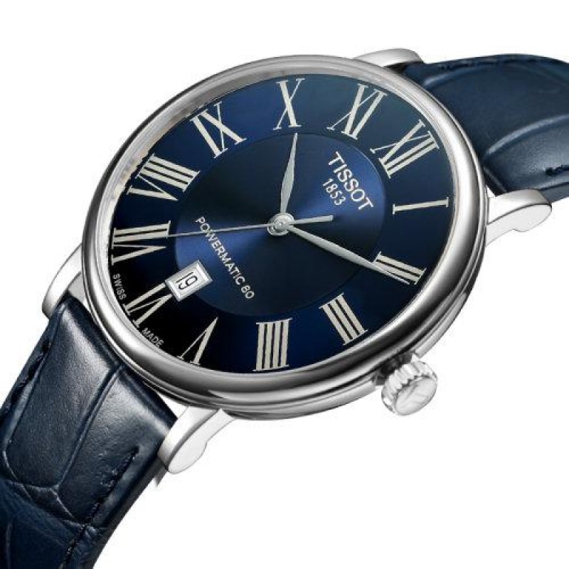 TISSOT/天梭瑞士手表 卡森臻我系列皮带自动机械男士腕表 皮带蓝盘T122.407.16.043.00