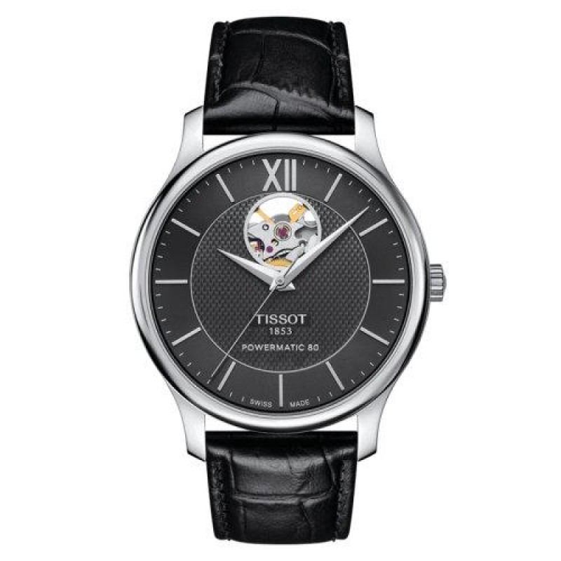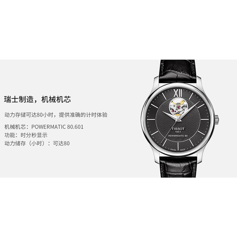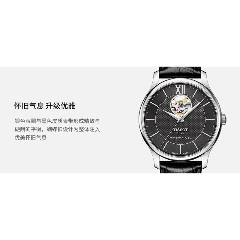 【包税】现货 TISSOT/天梭 俊雅系列精钢表壳黑盘黑色皮质表带男士80机芯自动机械腕表 40毫米