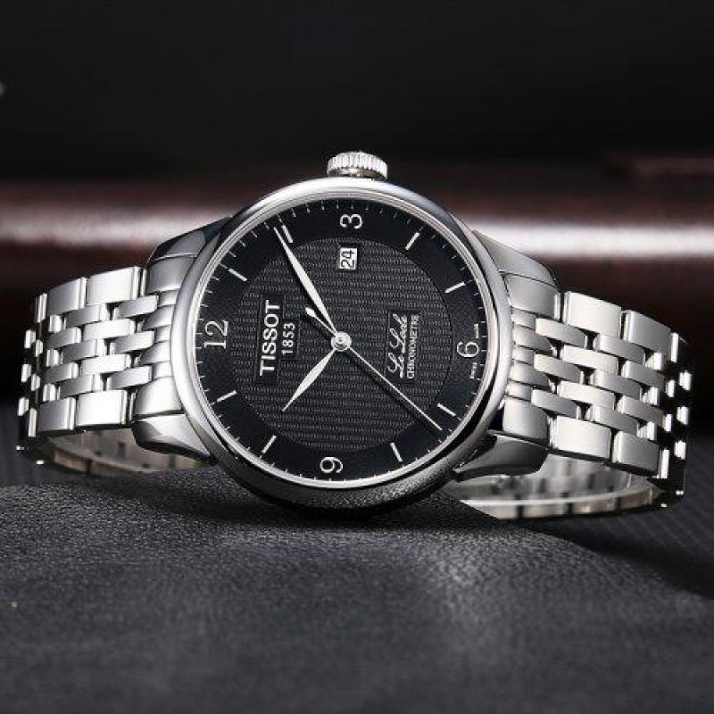 TISSOT/天梭 瑞士手表 力洛克系列日历动自动机械机芯男士腕表 钢带黑盘T006.408.11.057.00
