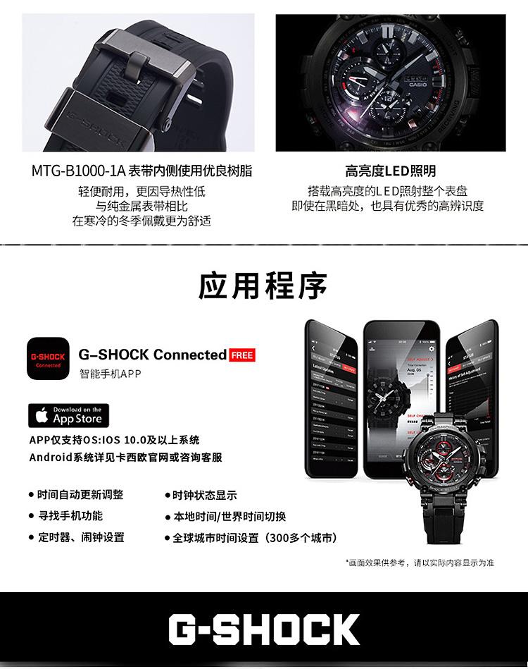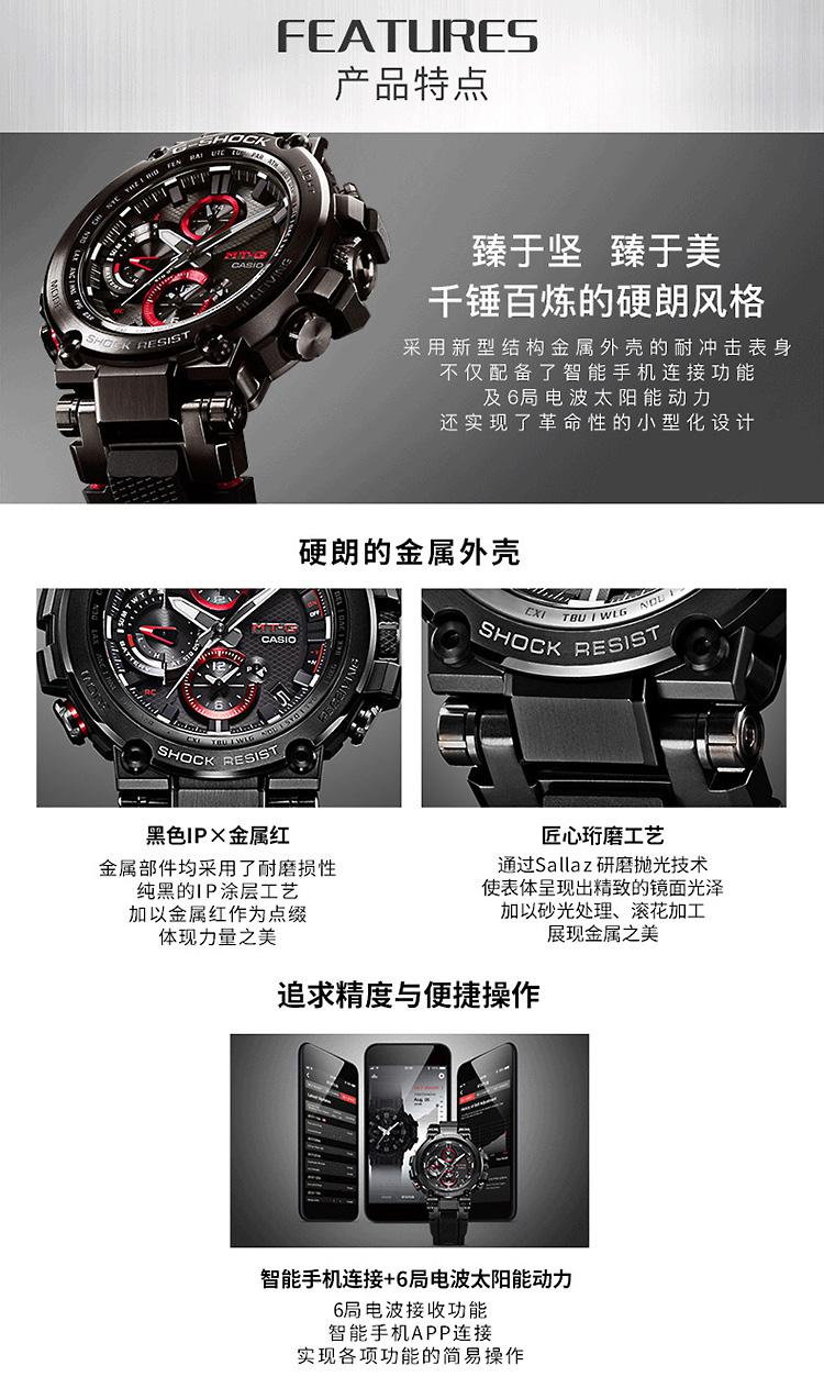 CASIO/卡西欧 G-SHOCK系列太阳能动力蓝牙功能电波六局防水男表MTG-B1000B-1APR