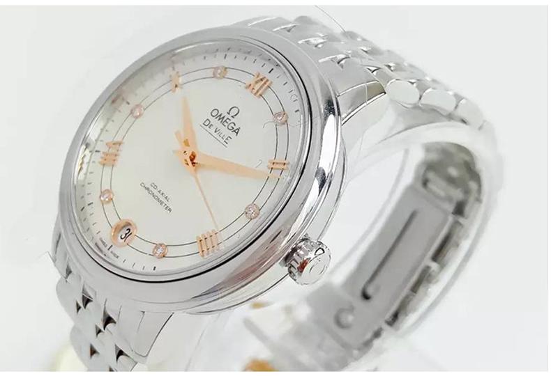 OMEGA/欧米茄瑞士手表 碟飞系列日历镶钻自动机械女士腕表 钢带白盘424.10.33.20.55.002