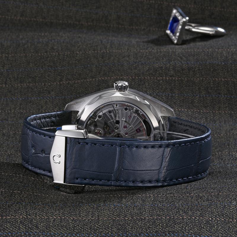 OMEGA/欧米茄瑞士手表 海马系列日历自动机械表防水男士腕表 皮带蓝盘220.13.41.21.03.003
