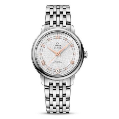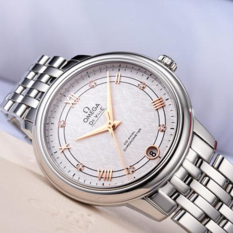 OMEGA/欧米茄瑞士手表 碟飞系列日历镶钻自动机械女士腕表 钢带银盘424.10.33.20.52.001