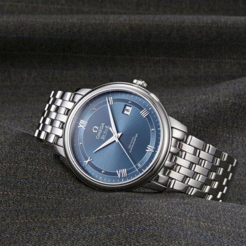 OMEGA/欧米茄瑞士手表 碟飞系列日历自动机械男士腕表 钢带蓝盘424.10.40.20.03.002