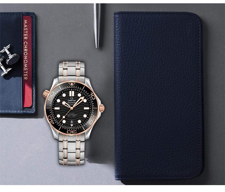 OMEGA/欧米茄瑞士手表 海马系列日历自动机械男士腕表 钢带黑盘210.20.42.20.01.001