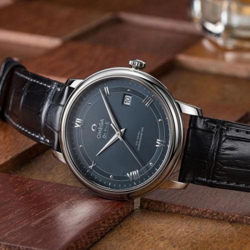 OMEGA/欧米茄瑞士手表 碟飞系列自动机械男士腕表 皮带蓝盘424.13.40.20.03.002