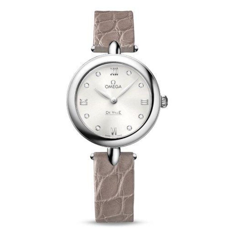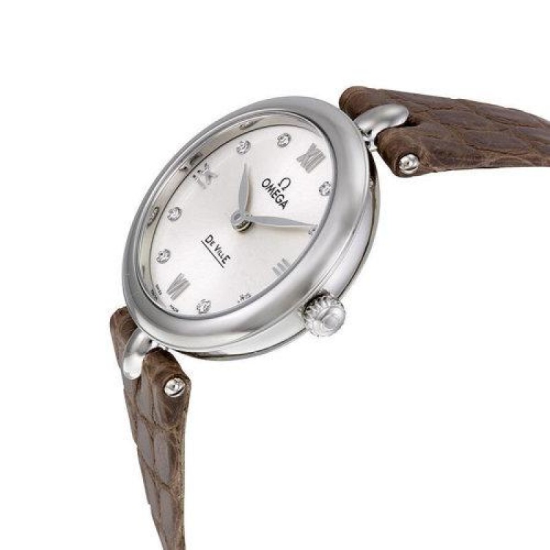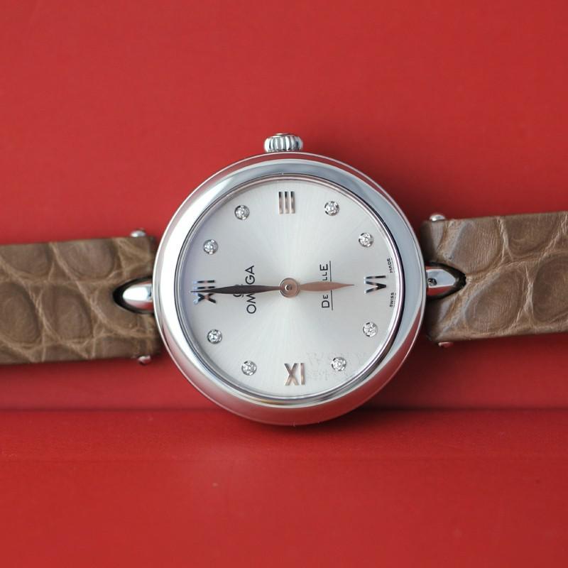 OMEGA/欧米茄瑞士手表 碟飞系列镶钻石英女士腕表 皮带银盘424.13.27.60.52.001