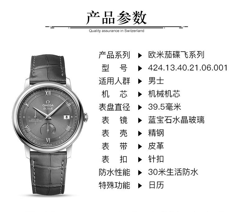 OMEGA/欧米茄瑞士手表 碟飞系列自动机械男士腕表 皮带黑盘424.13.40.21.06.001 $4384.3 |