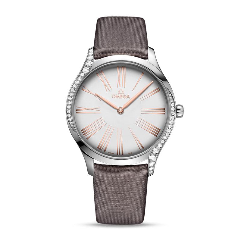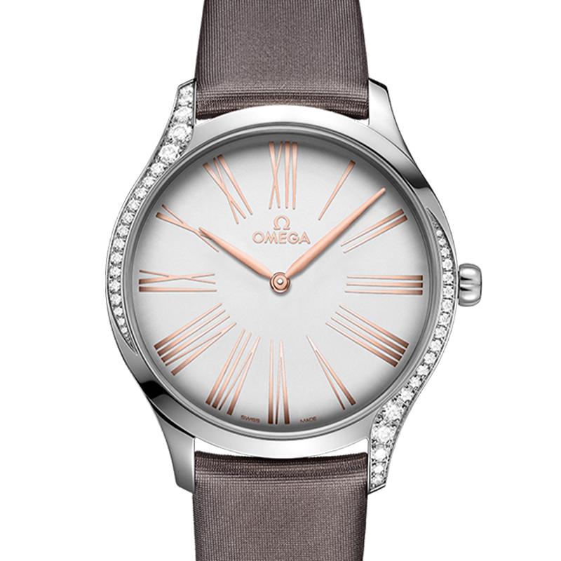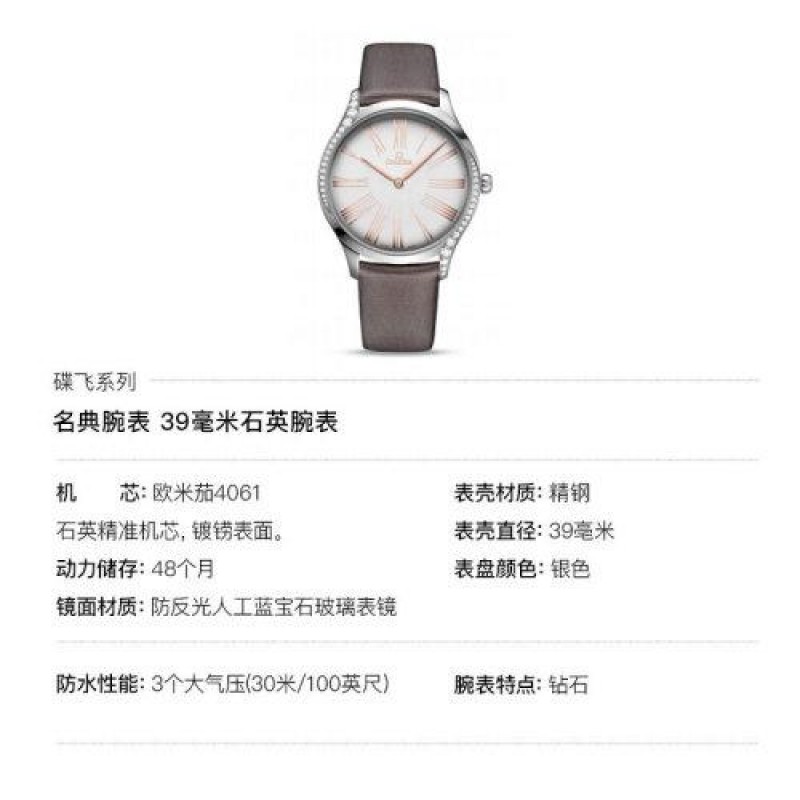 OMEGA/欧米茄瑞士手表 碟飞系列镶钻石英女士腕表 钢带灰盘428.17.39.60.02.001