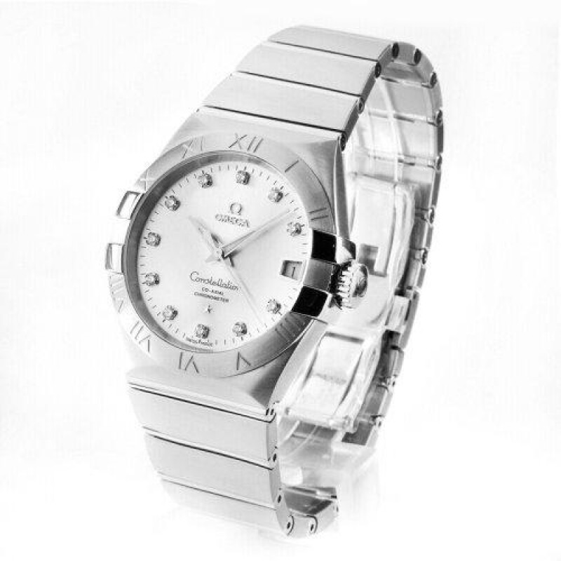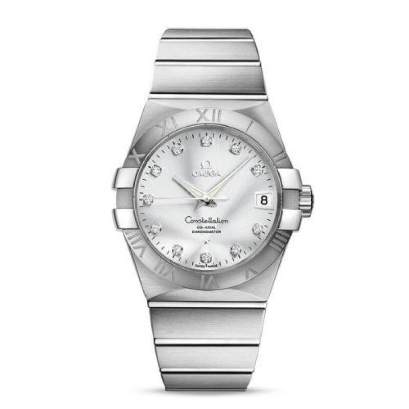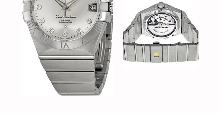 OMEGA/欧米茄瑞士手表 星座系列日历镶钻自动机械男士腕表 钢带银盘123.10.38.21.52.001