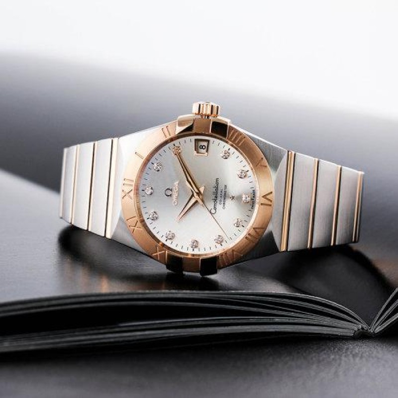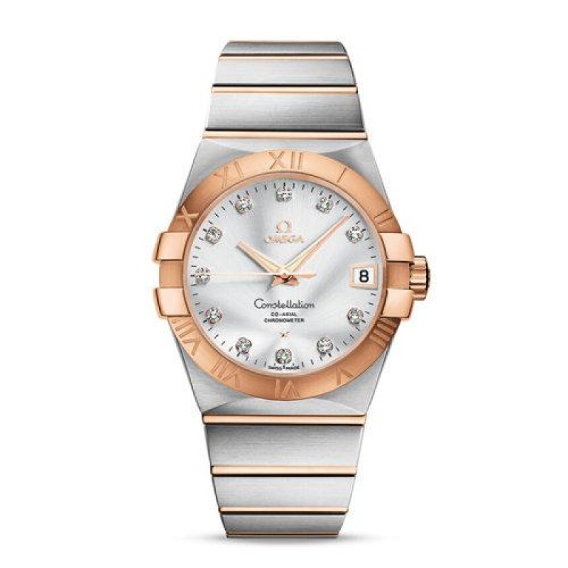 OMEGA/欧米茄瑞士手表 星座系列日历镶钻自动机械男士腕表 钢带银盘123.20.38.21.52.001