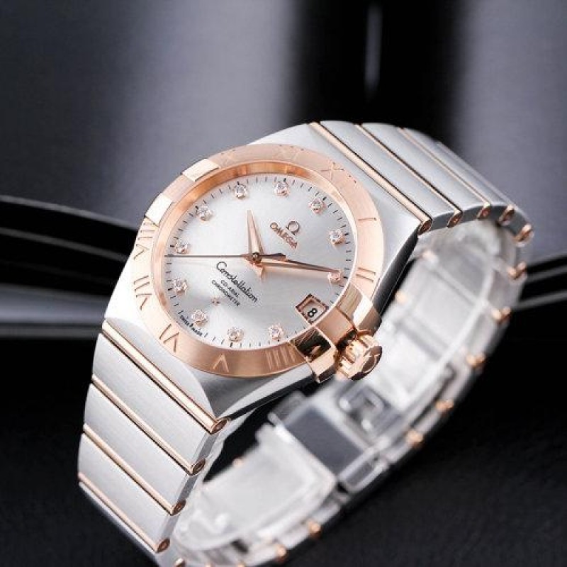 OMEGA/欧米茄瑞士手表 星座系列日历镶钻自动机械男士腕表 钢带银盘123.20.38.21.52.001 $9127.1 |
