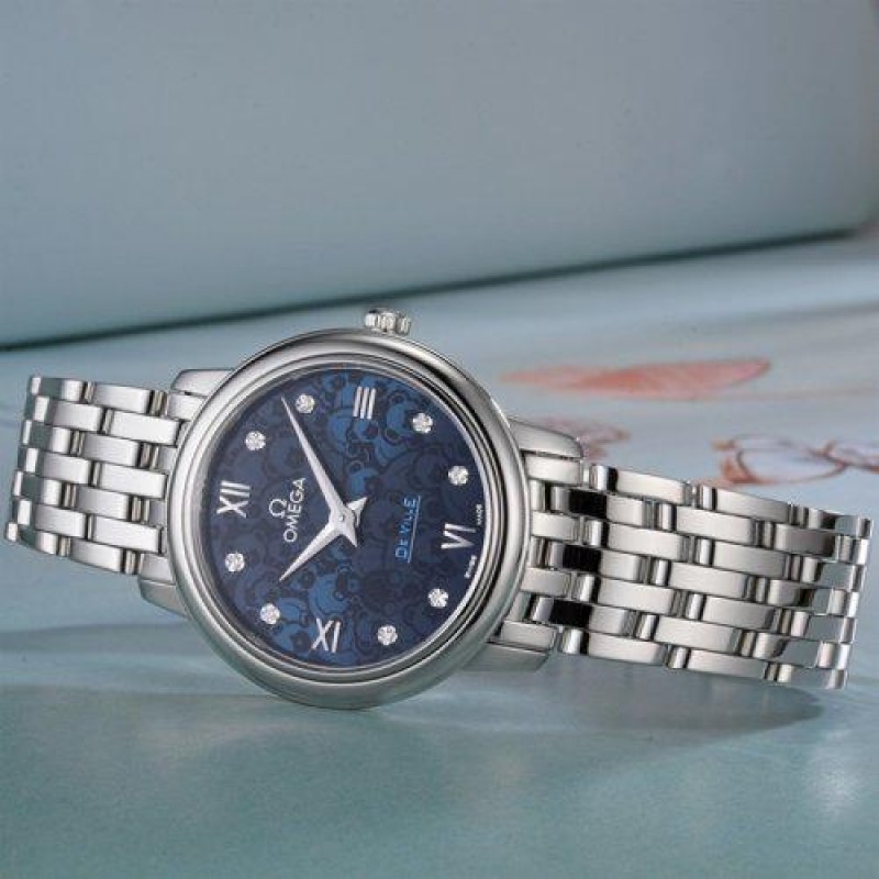 OMEGA/欧米茄瑞士手表 碟飞系列镶钻石英机芯女士腕表 钢带蓝盘424.10.27.60.53.003