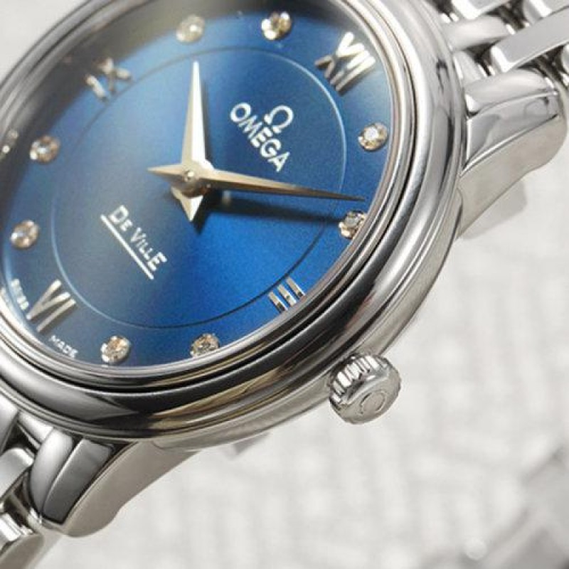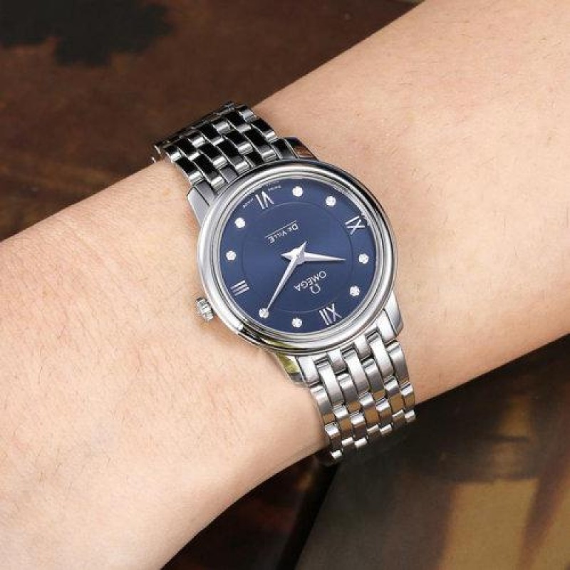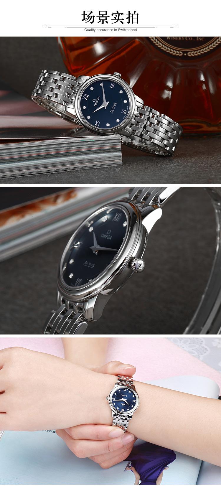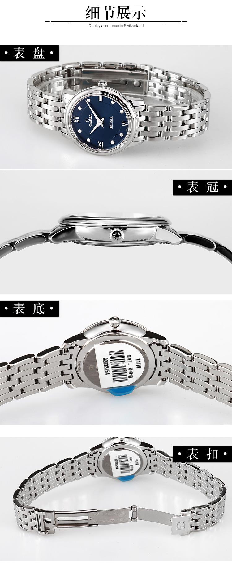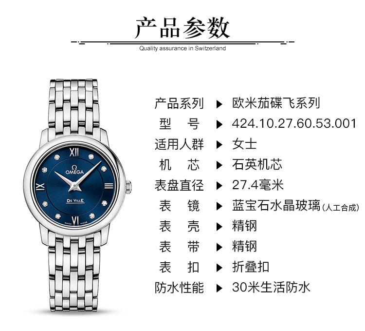 OMEGA/欧米茄瑞士手表 碟飞系列镶钻石英机芯女士腕表 钢带蓝盘424.10.27.60.53.001