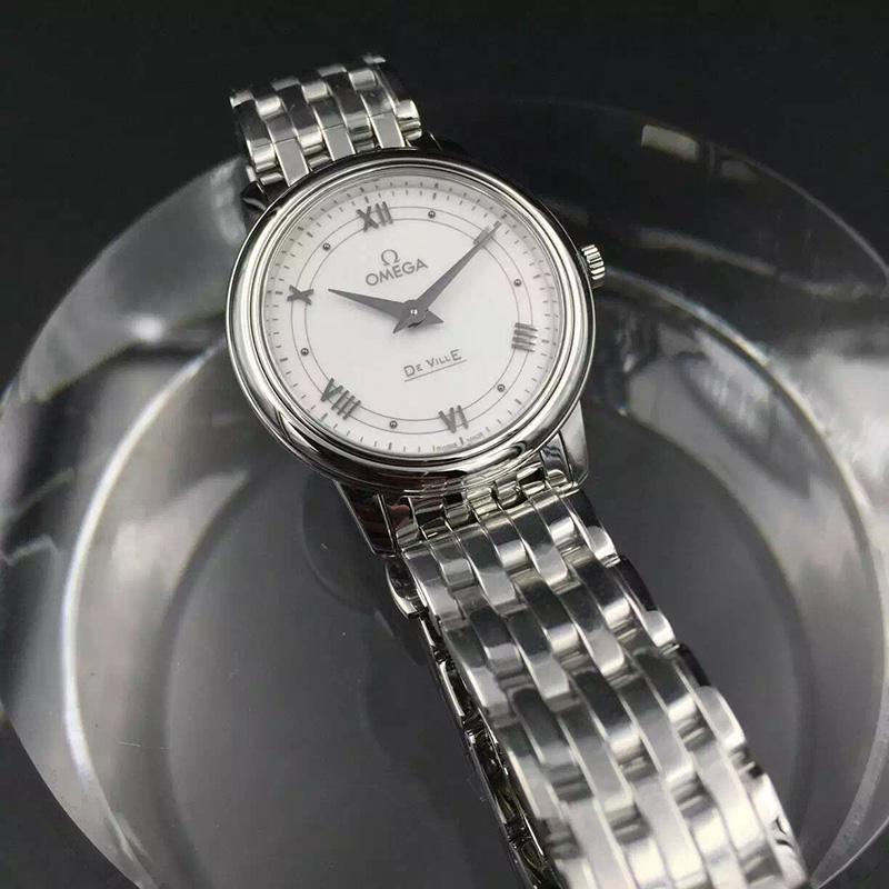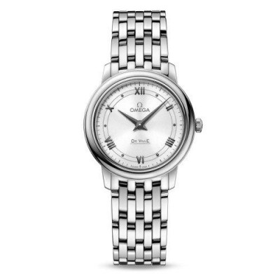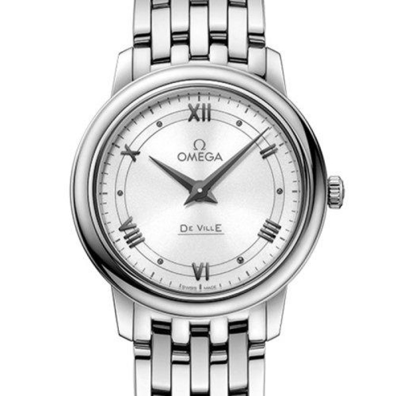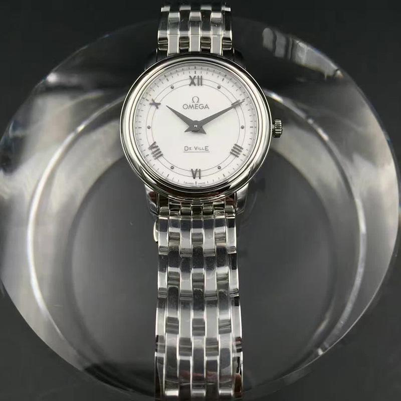OMEGA/欧米茄瑞士手表 碟飞系列罗马刻度石英机芯女士腕表 钢带白盘424.10.27.60.04.001