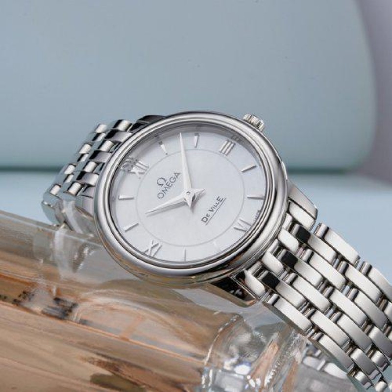 OMEGA/欧米茄瑞士手表 碟飞系列罗马刻度石英机芯女士腕表 钢带白盘424.10.27.60.05.001 $2640.0 |
