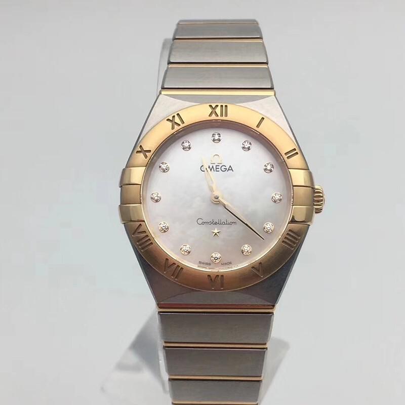 OMEGA/欧米茄瑞士手表 星座系列曼哈顿镶钻石英女士腕表 钢带白盘131.20.28.60.55.002