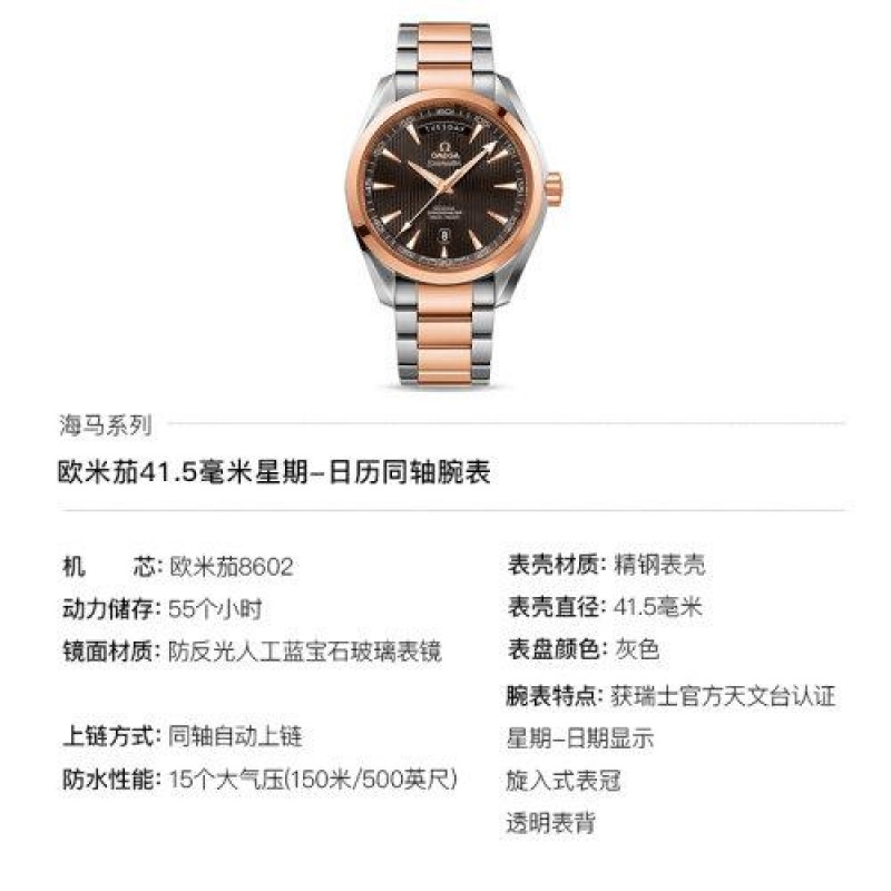 OMEGA/欧米茄瑞士手表 海马系列自动机械男士腕表 钢带棕盘231.20.42.22.06.001 $9953.6 |
